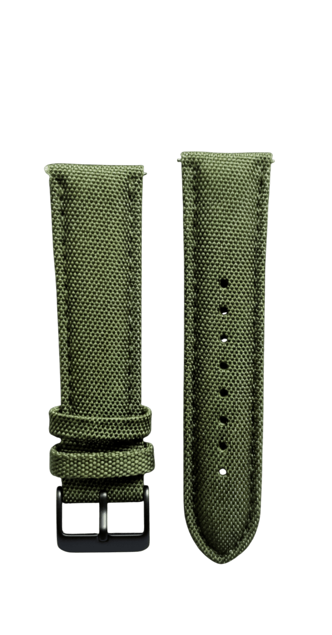 Geef je Wyzer Horloge een nieuwe look met deze groene canvas horlogeband met zilverkleurige gesp.